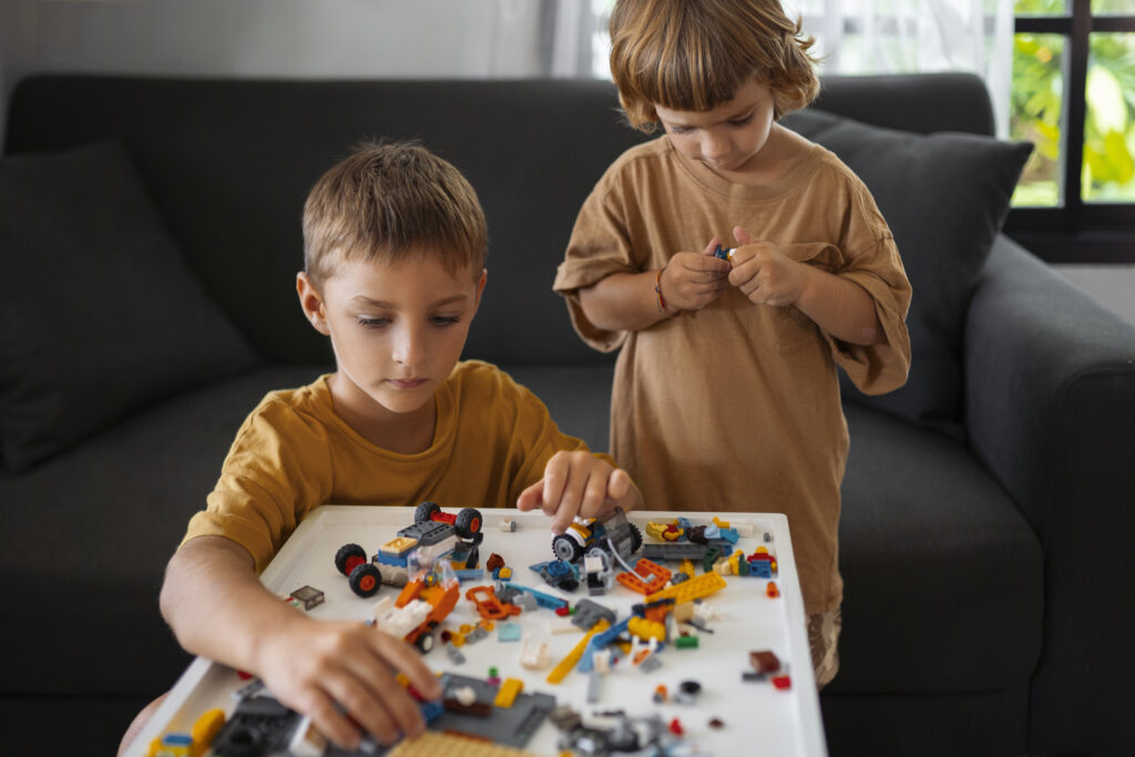 Konstravimas natūraliai įtraukia ir dažnai vaikai gali praleisti valandas kurdami miestus, automobilius ar fantazijos pasaulius.