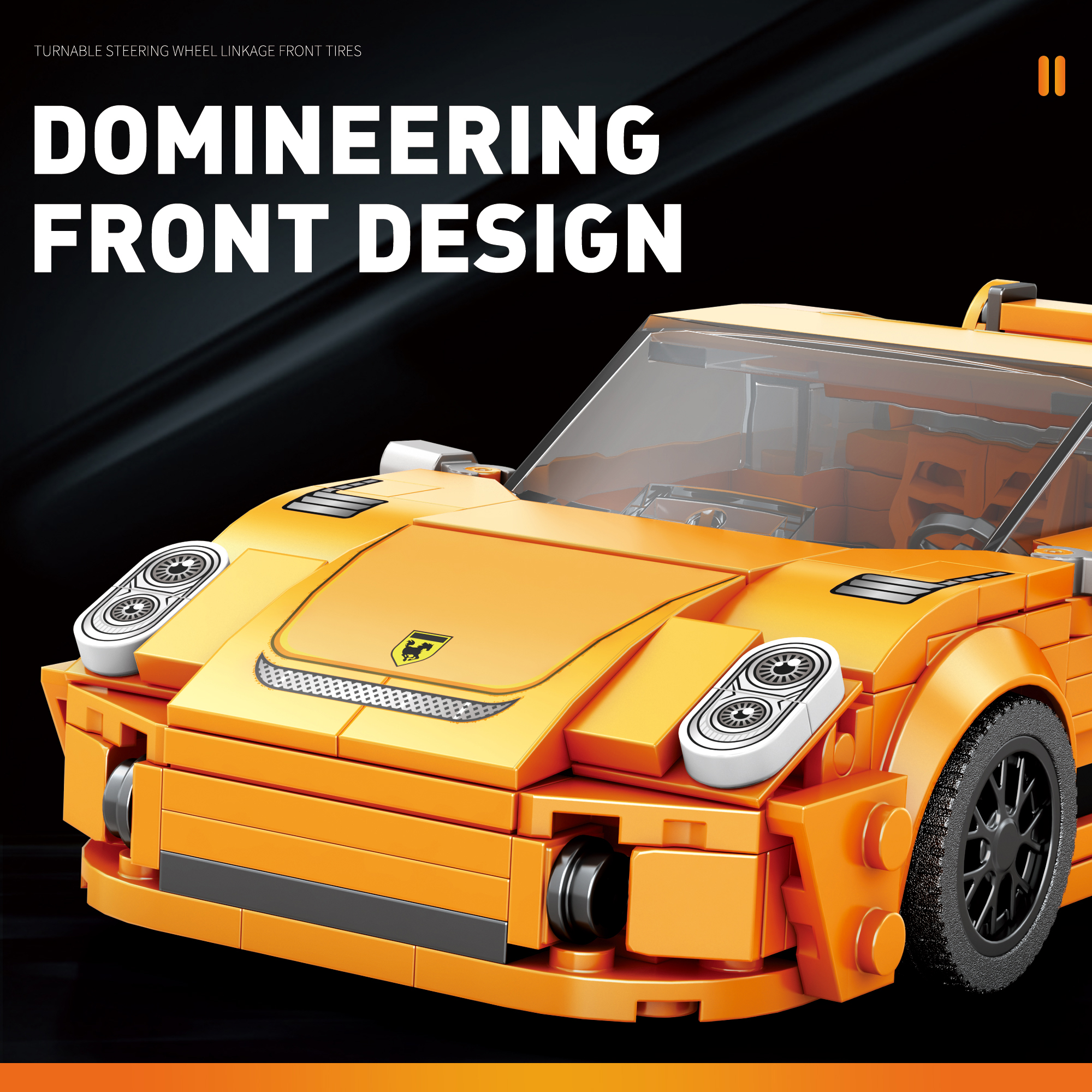 911 GT3 konstruktoriaus modelis – tai detalus ir sportiškas rinkinys automobilių entuziastams bei konstravimo mėgėjams. Šis modelis atkartoja legendinio sportinio automobilio dizainą, pasižymintį aerodinaminėmis linijomis, žemu profiliu ir išraiškingu galiniu spoileriu. Ryški oranžinė spalva bei sportiniai akcentai suteikia modeliui dinamišką ir agresyvią išvaizdą, primenančią tikrus GT klasės lenktyninius automobilius.