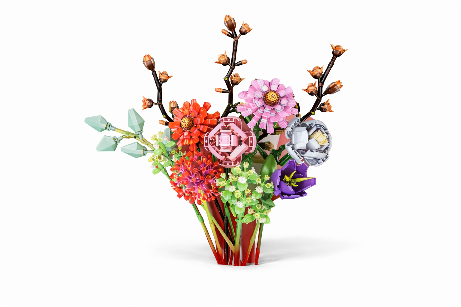 Šiame konstruktorių rinkinyje rasite ryškių, kontrastingų ir subtilių žiedų derinį – nuo rausvų žiedlapių iki žalsvų stiebų ir išraiškingų formų, kurios suteikia puokštei gyvumo ir autentiškumo. Modelis ne tik lavina kantrybę bei kūrybiškumą, bet ir tampa išskirtine namų ar darbo aplinkos puošmena.